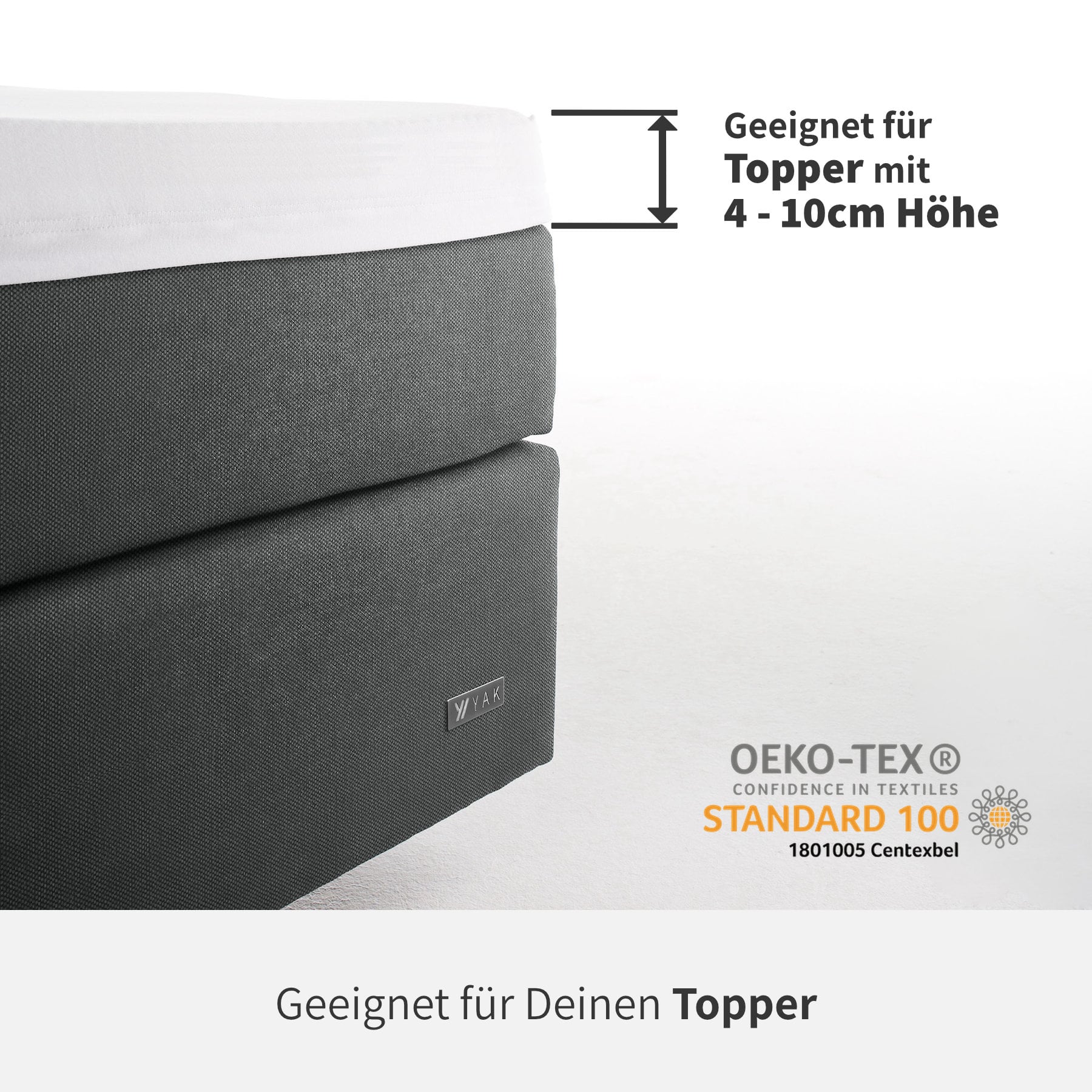 Das YAK Spannbettlaken für Topper kann auf jeden Topper verwendet werden, der eine geringere Höhe als 12cm hat.