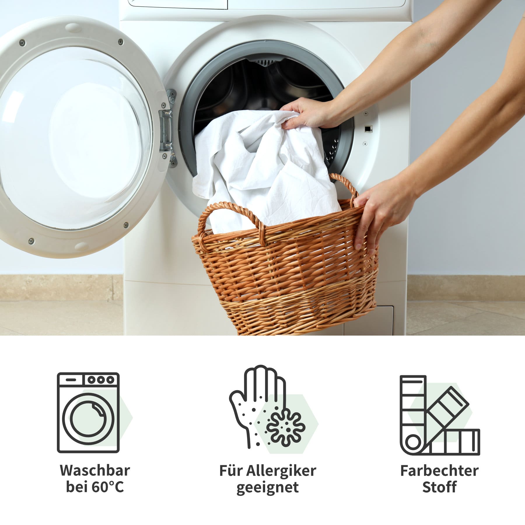 Grund für eine allergische Reaktion sind Hausstaubmilben. Da Du das Bettlaken bei 60°C waschen kannst, tötest Du die Hausstaubmilben. Und somit kann es zu keiner allergischen Reaktion kommen.