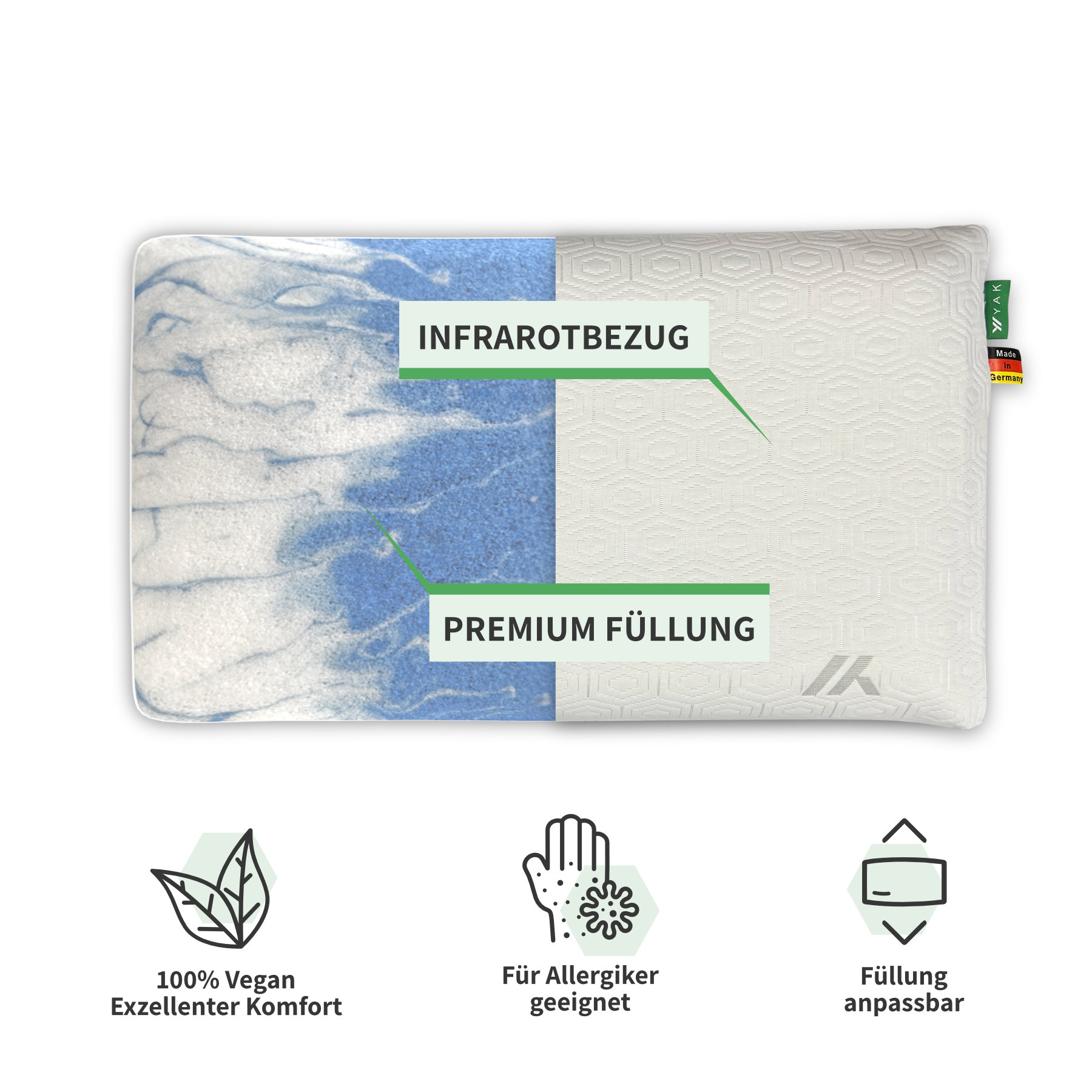 Die innovative Celliant®-Faser im Bezug des YAK Nackenkissens nutzt Deine Körperwärme und reflektiert sie als Vollspektrum-Infrarotenergie. Die Wirkung bleibt über die gesamte Lebensdauer des Kissens erhalten, egal wie oft Du den Bezug wäschst oder reinigst.