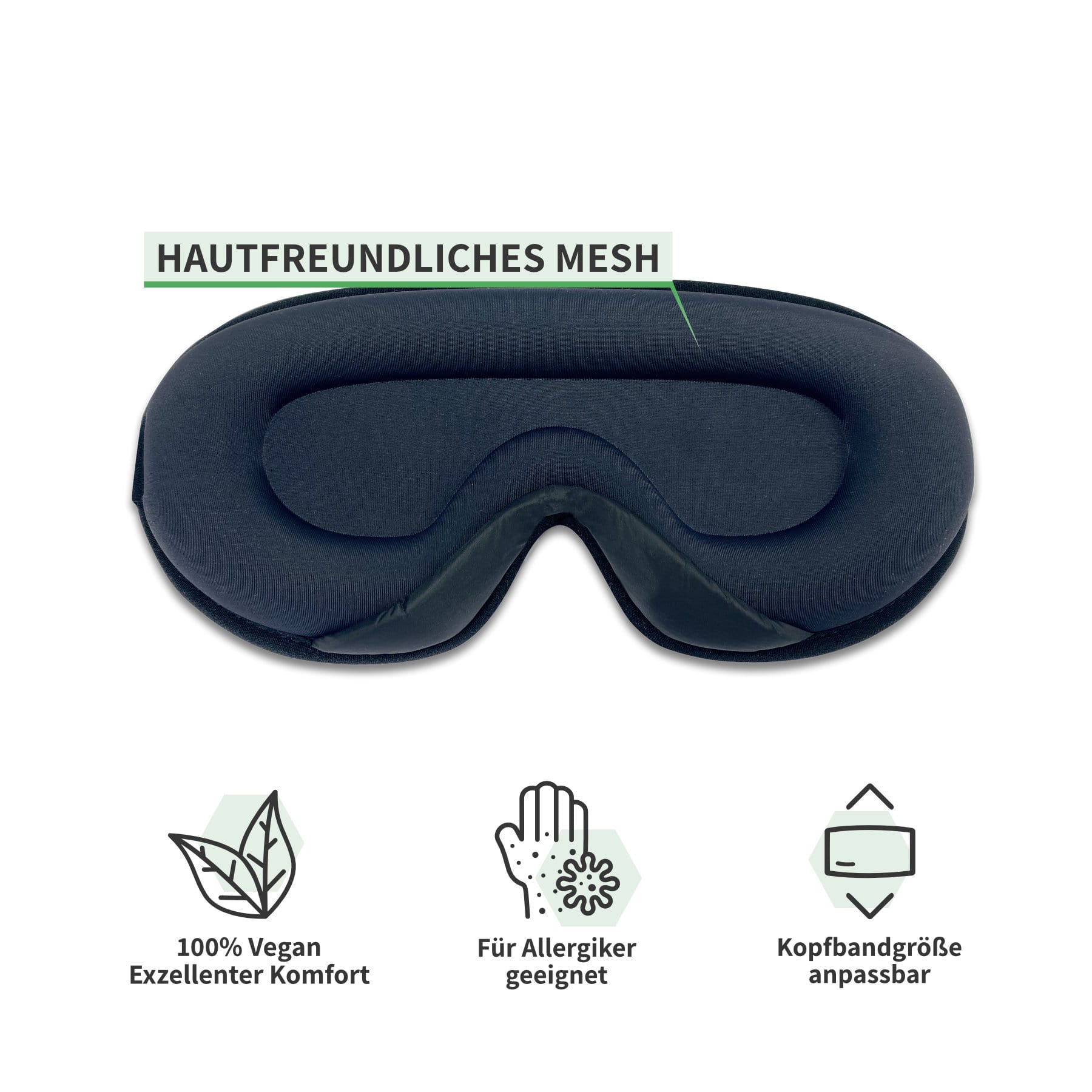 Die Schlafmaske erfüllt ihre Funktion perfekt und ist nicht drückend, da man beim Tragen die Augen öffnen kann. Die Passform ist bequem. Fühlt sich weich an.