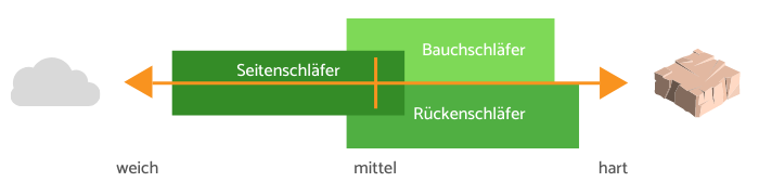 Ein weiterer Faktor ist die Schlafposition. Während Rücken- und Bauchschläfer härter liegen sollten, müssen Seitenschläfer in die Matratze einsinken können und somit weicher schlafen.